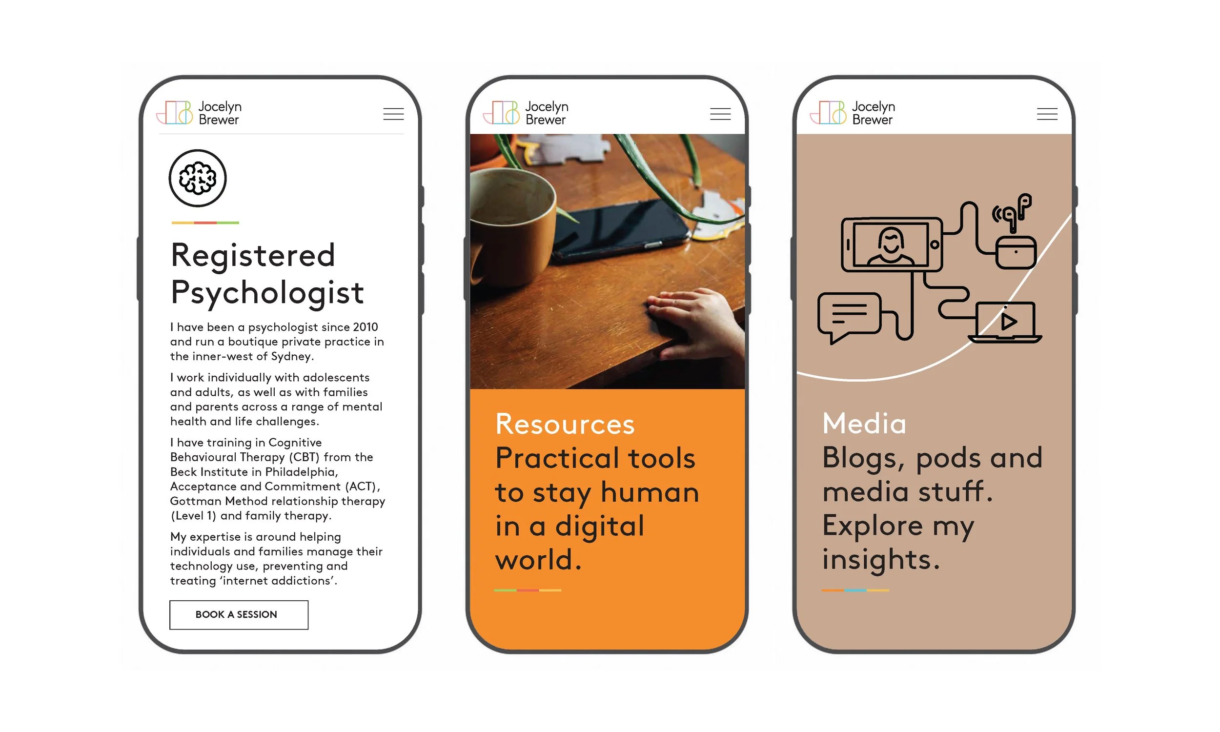Jocelyn Brewer is a leading voice in digital wellbeing—a psychologist, educator and founder of the Digital Nutrition™ philosophy. I led a strategic rebrand to clarify her growing ecosystem of offerings, establishing Jocelyn Brewer as the master brand with Digital Nutrition™ and Talk to Jocelyn as distinct sub-brands. The refreshed identity and website reflect her smart, science-led approach and bring clarity, cohesion and personality to her expanding platform.
